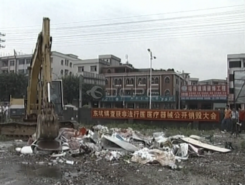 2007年8月25日 随着挖掘机的启动,一批医疗械材非法广告牌被彻底销毁,众多市民对大力打击非法行医拍手叫好。据悉,东坑至3月28日开展打击非法行医行动以来成效显著,全镇共出动执法人员790人次,检查医疗机构128间,取缔非法行医13间,有效清理镇内非法行医机构。