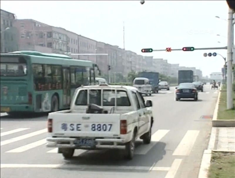 2006年04月09日 在厚街镇莞太路的新塘村路口,有不少的公共汽车来往穿梭其中,而就是在这里,公交车闯红灯的现象非常普遍。你看这辆公交车,不但随意上客,而且客一上车就立马走人,连两秒种的时间也等不及就闯过红灯。 再看这辆公交车,上客的方法就更是一绝:开着车门继续前行,要上车的乘客就要练就“眼明脚快”的本领了。除了公交车闯红灯、乱停车,还有不少的车辆为了贪方便与行人争抢斑马线横过马路,行人在这里过马路险象环生。